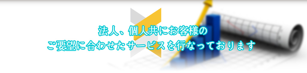 個人事業主・不動産所有者の会計・税務相談及び確定申告業務、相続・事業承継対策など、 お客様の幅広いご要望に沿ったサービスをご提供し、本質的な問題解決に向けて 様々な提案をさせていただきます。